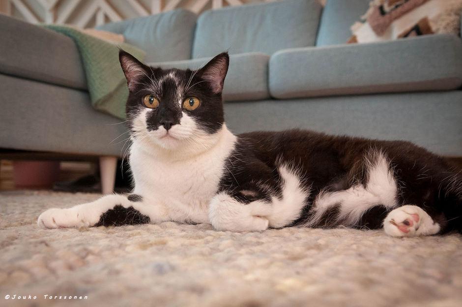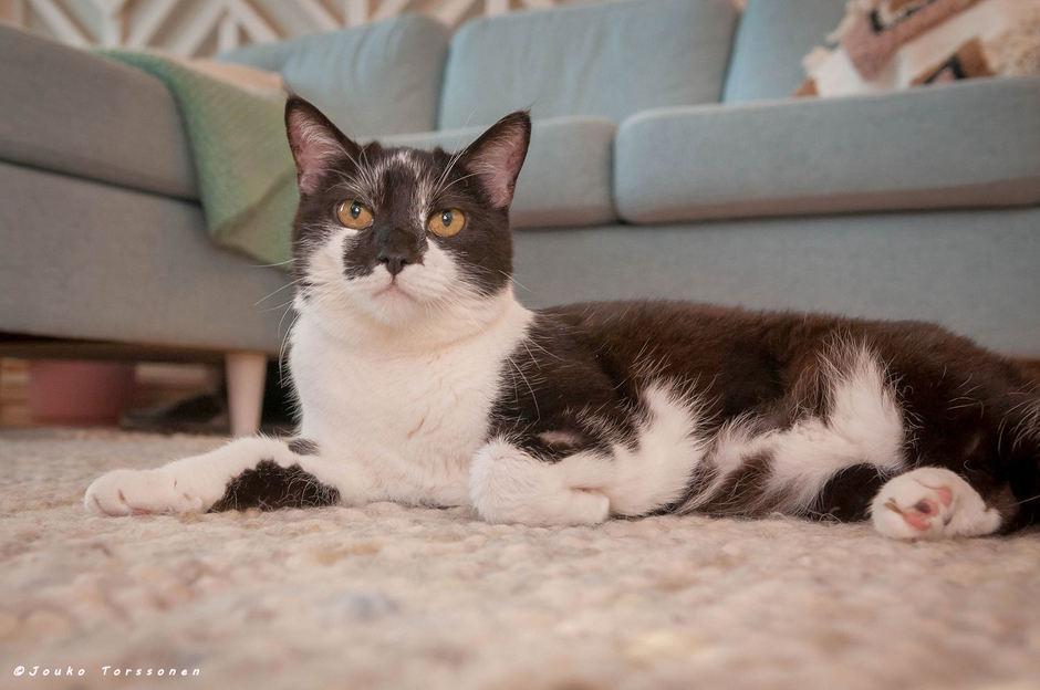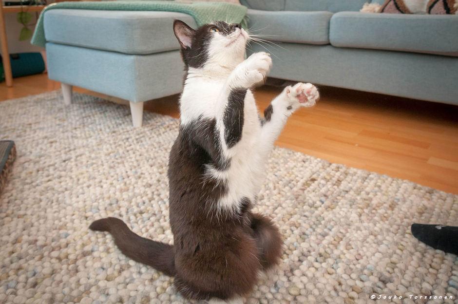 Välillä Usva innostuu myös onkilelulla leikkimisestä, mutta ehdottomasti parasta on vain loikoilu ja elämästä nauttiminen. Usva myös tulee yleensä itse hakemaan rapsutuksia, kun hellyydenpuuska yllättää.
