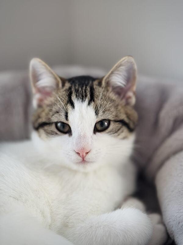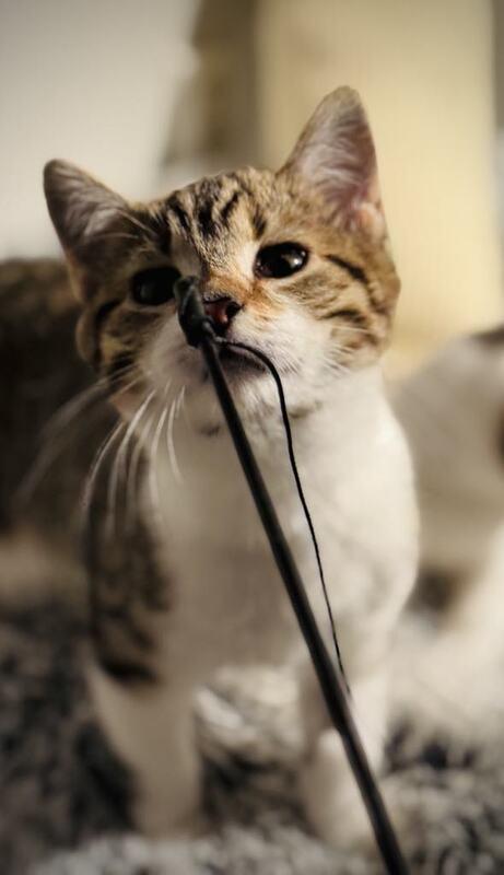 Justiina on hieman arka, mutta rakastaa kyllä toisen huomiota...etenkin toisten kissojen. Ihmisiin lämpiää hitaammin, mutta tulee kyllä syliin omatoimisesti kehräämään ja leikkimäänkin ja joka päivä rohkaistuu luottamaan enemmän ja enemmän. Justiinan kanssa pitää olla vähän kärsivällisempi ja lempeä, ettei säikähdä erilaisia tilanteita. Muistaa hyvin tilanteet, joissa on pelästynyt ja alkaa varomaan. Justiina on kuitenkin myös tosi rohkea ja nokkela silloin, kun on luottamusta ja oppii samantien käyttämään erilaisia kiipeilytelineitä ja seiniä ja vielä tulemaan niistä itse alas...toisin kuin Siiri, joka tarvitsee apua ja harjoittelua.
