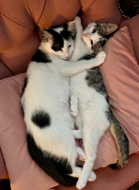 Sirkka ja Tarmo viihtyvät keskenään mainiosti, ja heidät löytääkin usein käpertyneinä vierekkäin ja pesemässä toisiaan. Juoksuleikit yhdessä ympäri taloa kuuluvat myös heidän jokapäiväisiin rutiineihin.
