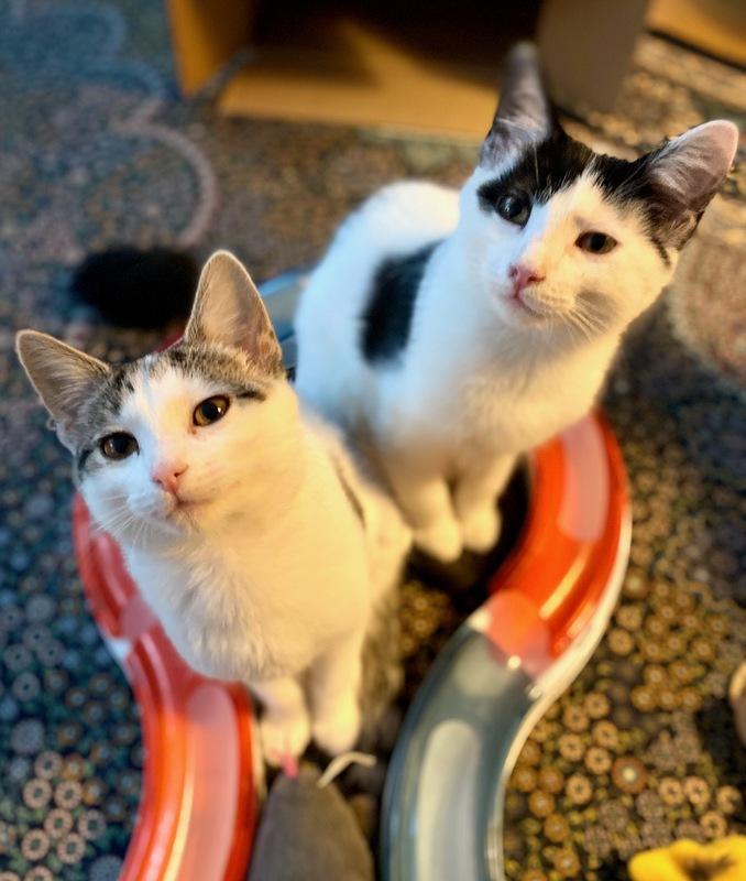 Sirkka ja Tarmo viihtyvät keskenään mainiosti, ja heidät löytääkin usein käpertyneinä vierekkäin ja pesemässä toisiaan. Juoksuleikit yhdessä ympäri taloa kuuluvat myös heidän jokapäiväisiin rutiineihin.