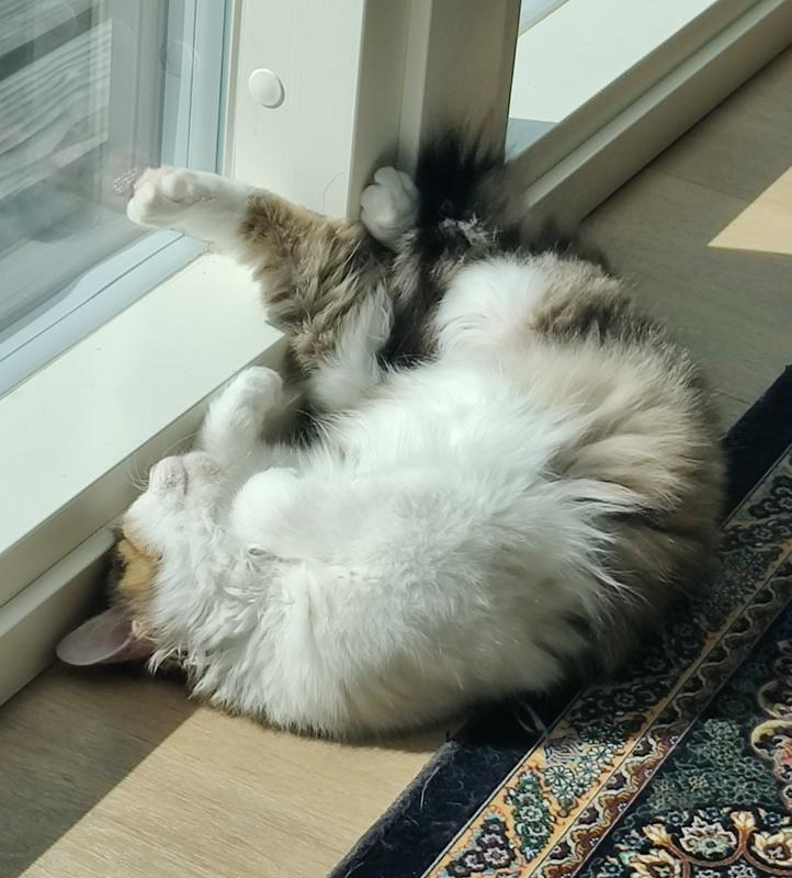 Nyt huhtikuun lopussa ollaan päästy tilanteeseen, että Torstia voi silittää, esimerkiksi kun se keskittyy syömiseen tai se on rentona sohvalla. Hyvällä hetkellä voi syliinkin hetkeksi ottaa. Joka tapauksessa on edetty hitaasti kissan ehdoilla. Torsti kehittyy kuitenkin kokoajan reippaammaksi. Siitä on kuoriutunut yllättäen utelias ja leikkisä nuori herra. Torsti seuraa mielellään sivusta ihmisten kotiaskareita ja sohvallakin se makoilee ihmisten jaloissa. Vieraat ovat toki vielä pelottavia, joka on tässä vaiheessa täysin ymmärrettävää.