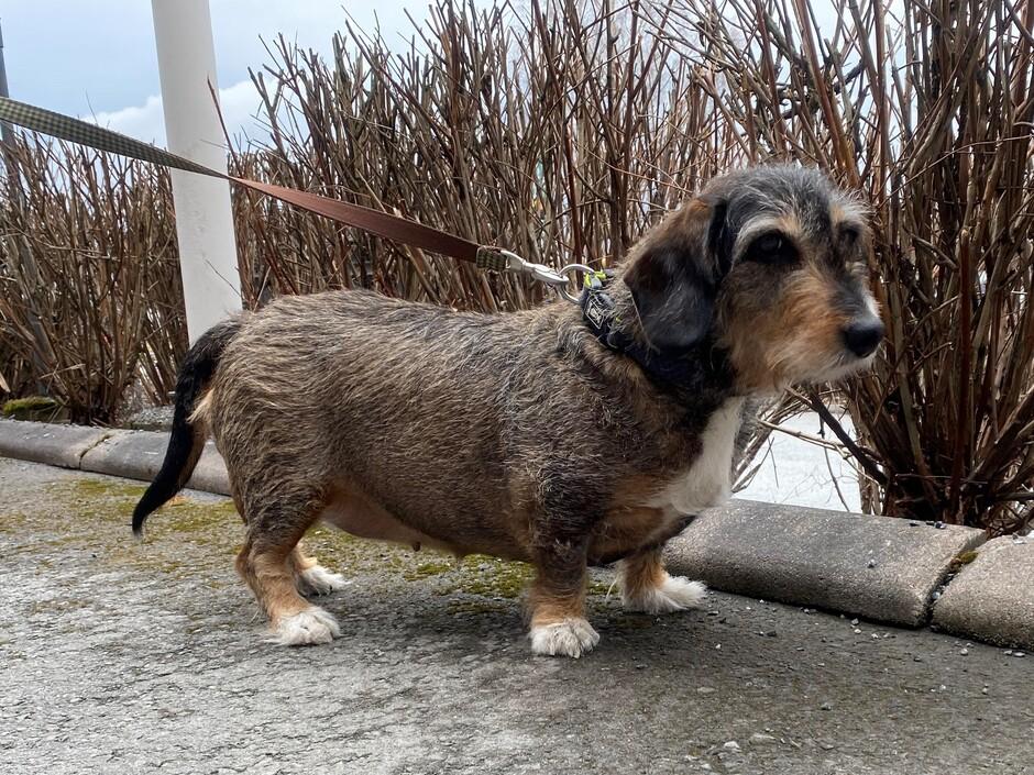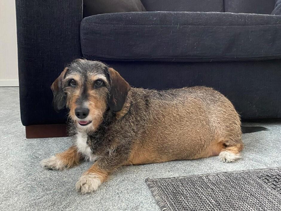 Omaa kotiaan etsii hyvään ikään päässyt Tyyne-rouva, joka on noin 9-vuotias, leikkaamaton mäyräkoiran ja beaglen sekoitus. Tyyne on tullut meille kodinvaihtajana iäkkään ihmisen jouduttua luopumaan hänesta.