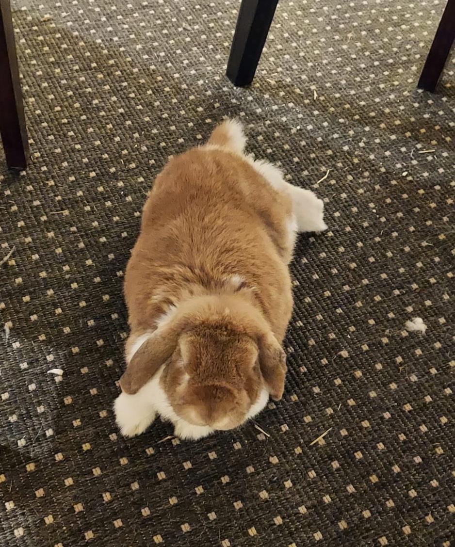 Nimo on kova syömään, ja on tottunut syömään monipuolisesti kasviksia, heinää, pellettejä, ja vettä menee reilusti. Heinälle olisi hyvä olla heinähäkki, mihin kani ei pääse istumaan, koska Nimo kätevänä poikana pissaa heti heiniin. Hän antaa rauhassa leikata kynnet, kun on mukavasti sylissä. Touhukkaan ja loikkivan luonteensa vuoksi häkkieläjäksi kania ei ole tarkoitettu. Nimokin on tottunut kulkemaan vapaasti pitkin taloa muiden mukana.