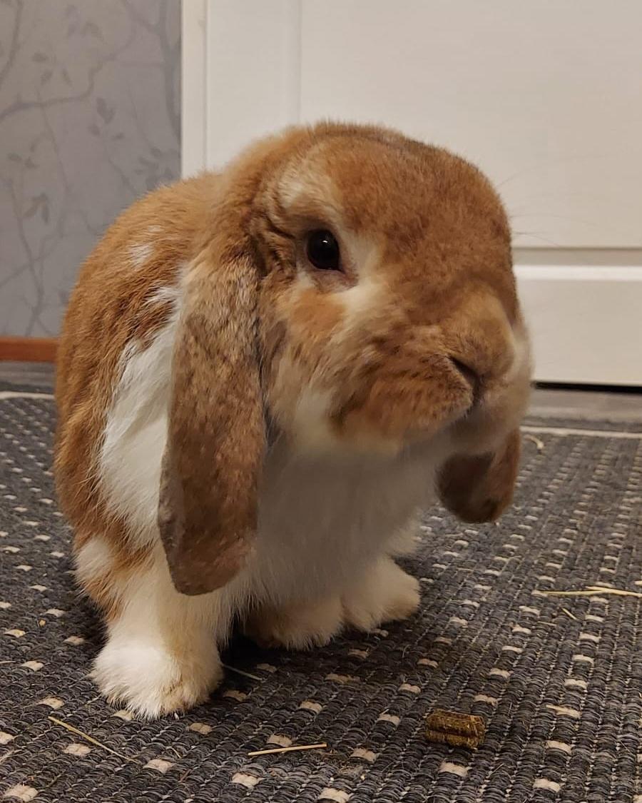 Omaan kotiin malttamattomana olisi valmis loikkimaan 5-vuotias ruskeavalkoinen kääpiöluppa Nimo.