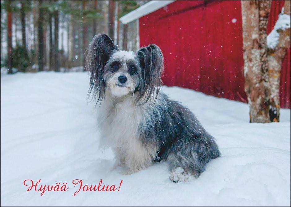Vuoden 2018 korteissa (numerot 1-6) poseeraavat löytöpennut Kossi, Ändi ja Malla sekä koirat Hile ja Vertti.